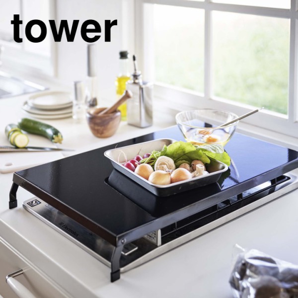 tower《折り畳みガスコンロカバータワーワイド》ガスコンロコンロ上コンロカバー作業台作業スペース収納食材置きキッチン台所カバーケース隙間収納49224923ホワイトブラック白黒YAMAZAKIタワー山崎実業