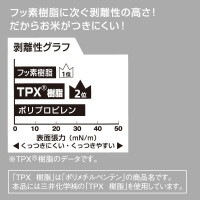フッ素樹脂に次ぐ剥離性の高さのTPX製だから更にご飯がつきにくい。