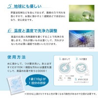 <使用方法> 水に溶かして、つけ置き洗い。あとはすすぐだけでOK!頑固な汚れには濃度を濃くして、高温のお湯で洗うとGOOD!